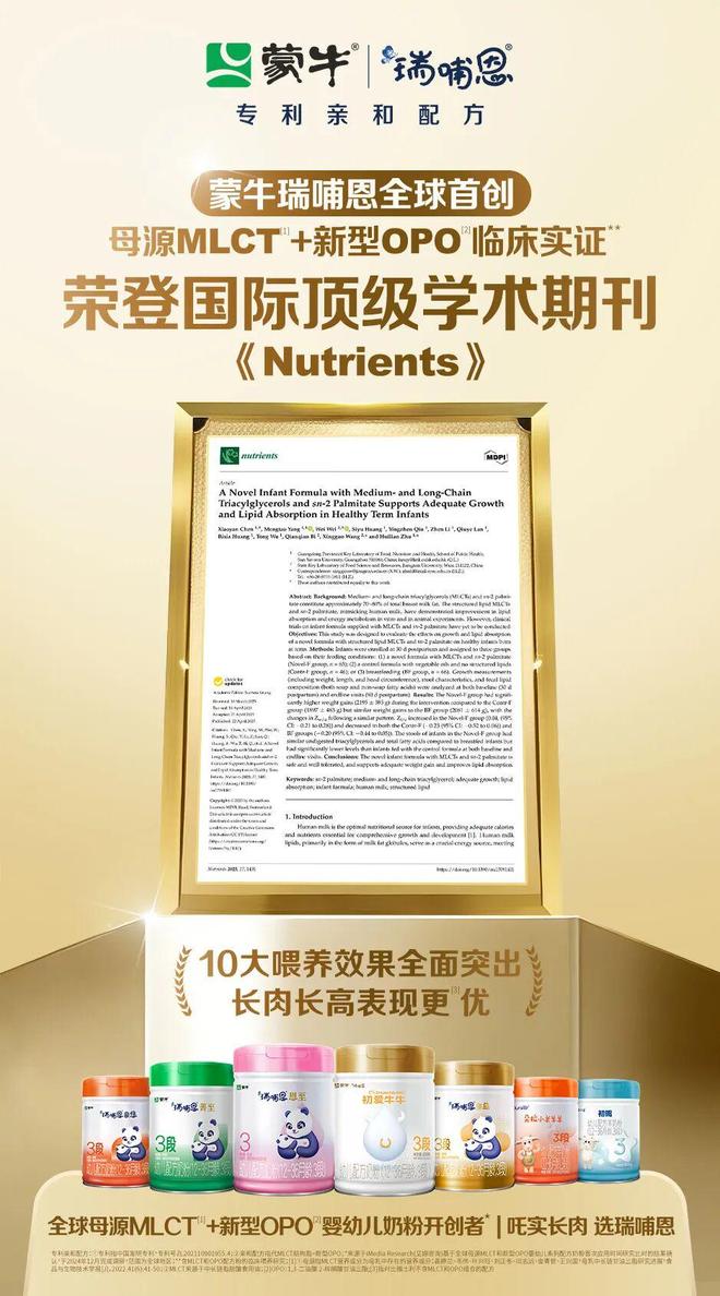 它以十年磨一剑的坚守,打破欧美核心技术垄断。面对婴配粉核心技术长期被国外掌控的困境,蒙牛瑞哺恩携手江南大学历经12年攻关,2022年全球首创1“母源MLCT2+新型OPO3”,实现了婴配粉内甘油三酯从单一OPO到多元MLCT+新型OPO的模拟,在母乳脂肪相似度综合评分模型中达90分,项目成果达到了国际领先水平。MLCT更成为首个写入婴配粉新国标的新原料。
