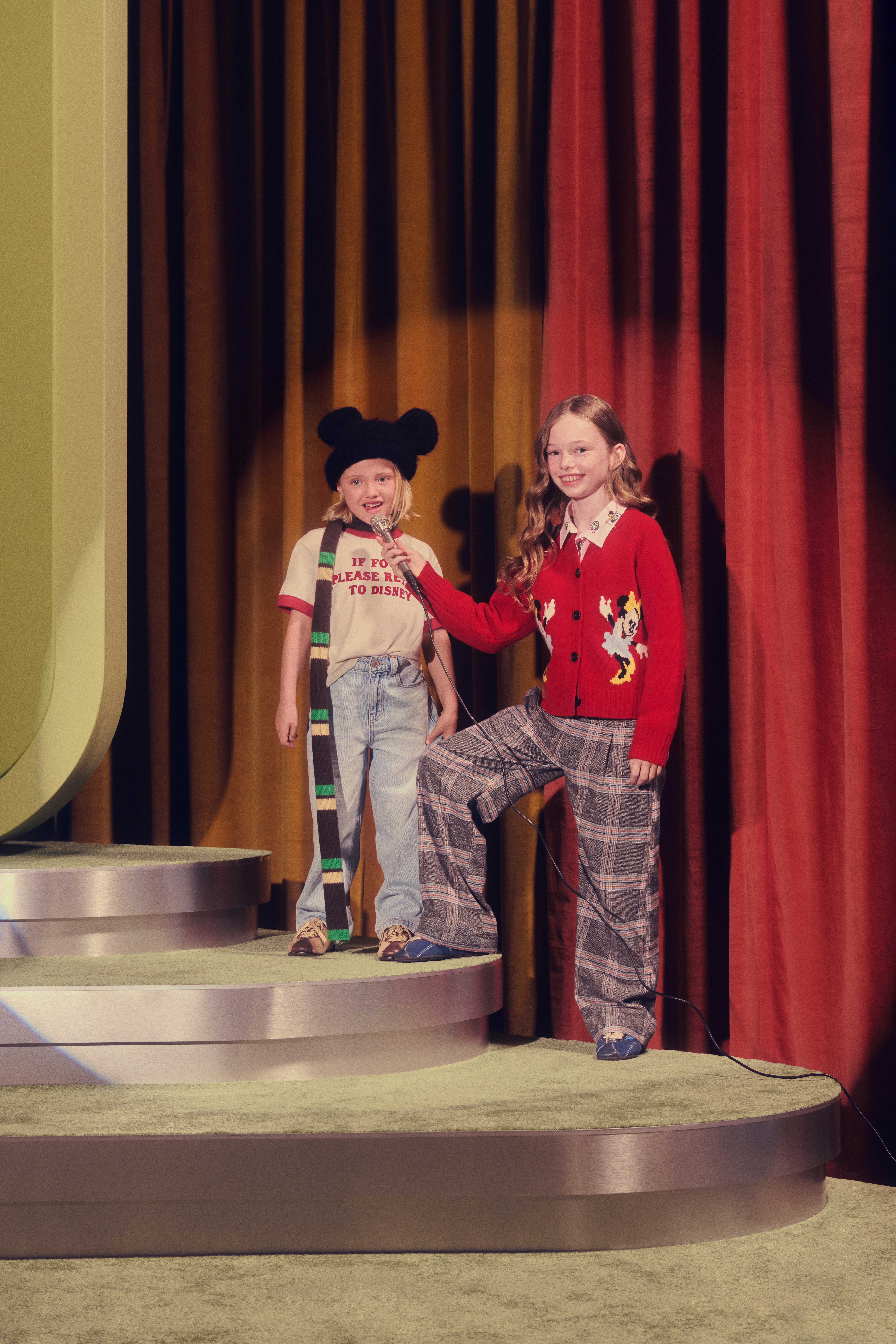 女童装受角色启发,推出甜美的派对裙、休闲单品与亮色针织,毛绒面料为外套、长围巾与超大帽子增添趣味质感。男童装汲取复古运动风,包含棒球夹克与学院毛衣,可搭配条纹海魂衫、格纹长裤与徽章针织品。